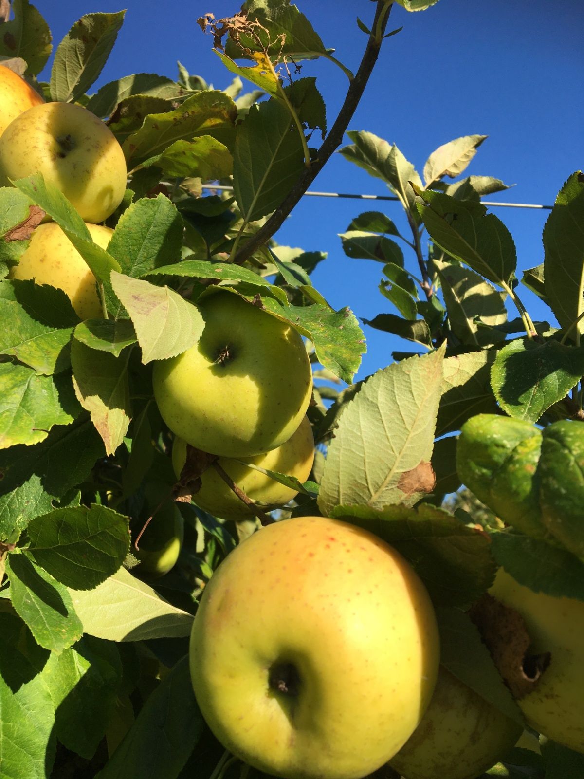 Les pommes nouvelles arrivent. A partir du 12 septembre 2025 vous pourrez cueillir tous les jours de 9H à 18H des Querinas, Opals, Goldens, Morren's Jonnagored.